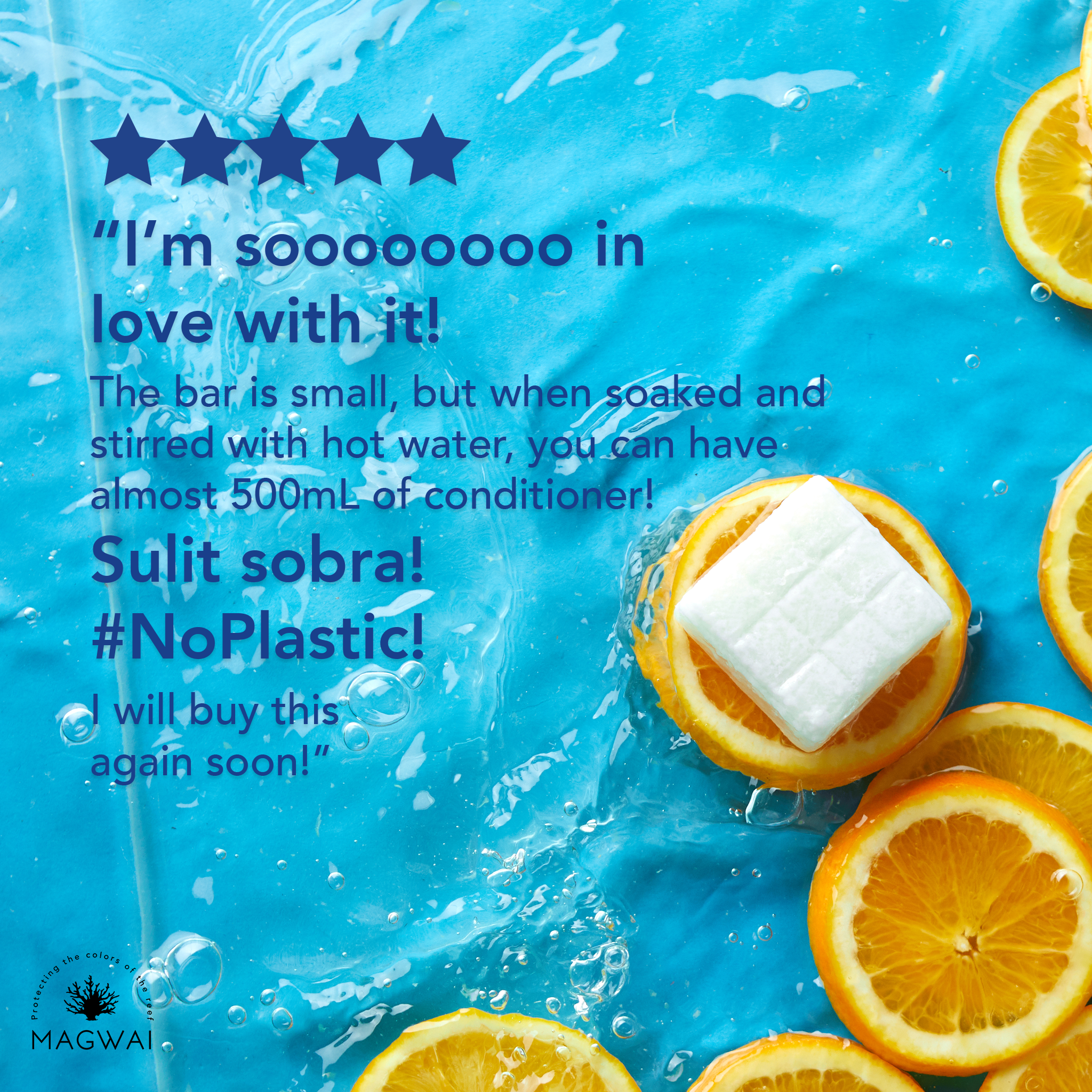 MAGWAI Conditioner Blend is the country's first bar-to-liquid conditioner that keeps your hair silky smooth and the ocean plastic-free. It delivers on the plastic-free promise while providing the creamy conditioner texture that you love and are familiar with.
