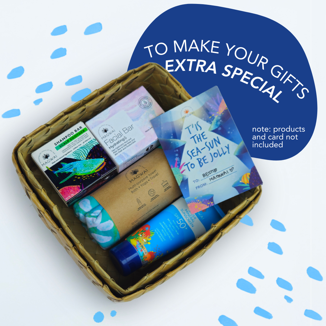 Our Tampipi Box is made of biodegradable fiber that will give your gift that extra flair. The perfect natural, plastic-free gift box for MAGWAI products made of natural ingredients.